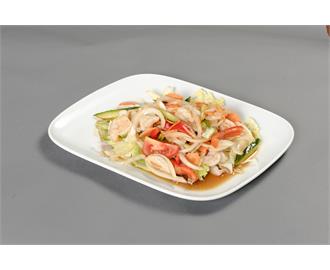 €11.90Garnelensalat mit Zwiebeln, Gurken, Tomaten, Paprika, Karotten und Zitronensaft